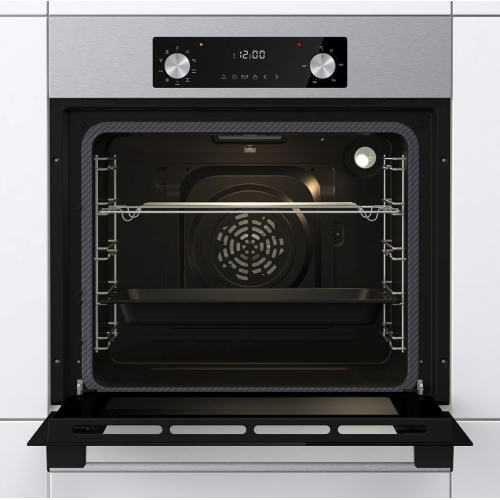 Электрический духовой шкаф Gorenje BO6737E03NWG в корпусе белого цвета оборудован утапливаемыми поворотными переключателями для регулировки температуры от 50 до 250 °C. Опция очистки паром расщепляет стойкие пятна. Режим конвекции распределяет теплый воздух по внутренней камере для равномерного запекания блюд. Подключение к сети осуществляется через кабель длиной 1 м. Лампа освещения позволяет контролировать ход приготовления пищи, не открывая дверцу. Gorenje BO6737E03NWG выключается в заданный временной интервал. Достаточно воспользоваться программируемым таймером. Выбранные настройки отображаются на функциональном дисплее. По окончании работы происходит запуск встроенного вентилятора для охлаждения прибора до комнатной температуры. |