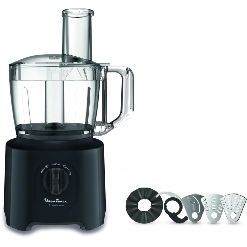 Кухонный комбайн Moulinex FP245810 имеет чашу объемом 2,4 л. с прозрачными стенками, которые упрощают процесс контроля за измельчением. Устройство мощностью 800 Вт обладает тремя рабочими скоростями и импульсным режим мгновенно повышающим эффективность измельчения ингредиентов. Модель оснащена 5 насадками. На каждой насадке указана скорость, что позволяет пользоваться прибором без лишних усилий |