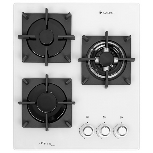 Газовая варочная поверхность GEFEST имеет компактные размеры, а значит, подходит для оснащения маленьких кухонь. На стеклянной панели белого цвета располагаются всего 3 конфорки, закрытые чугунными решетками. Одна из конфорок имеет двойной ряд пламени («Двойная корона»), что делает ее более мощной. На ней можно быстро приготовить или разогреть большую порцию еды. Для безопасной эксплуатации варочная поверхность оснащена опцией газ-контроля, способной автоматически прекращать подачу газа в конфорку с погасшим пламенем.Для включения конфорок и регулировки пламени в них газовая варочная поверхность оборудована поворотными переключателями, которые четко фиксируются в нужном положении. В каждый из них встроен механизм электроподжига, благодаря чему зажигать пламя в конфорке можно без использования спичек. Для работы данного механизма варочная поверхность подключается к электросети с помощью кабеля (в комплекте). Специальная конструкция форсунок варочной поверхности предусматривает использование природного газа (метана) и сжиженного (пропана-бутана). |